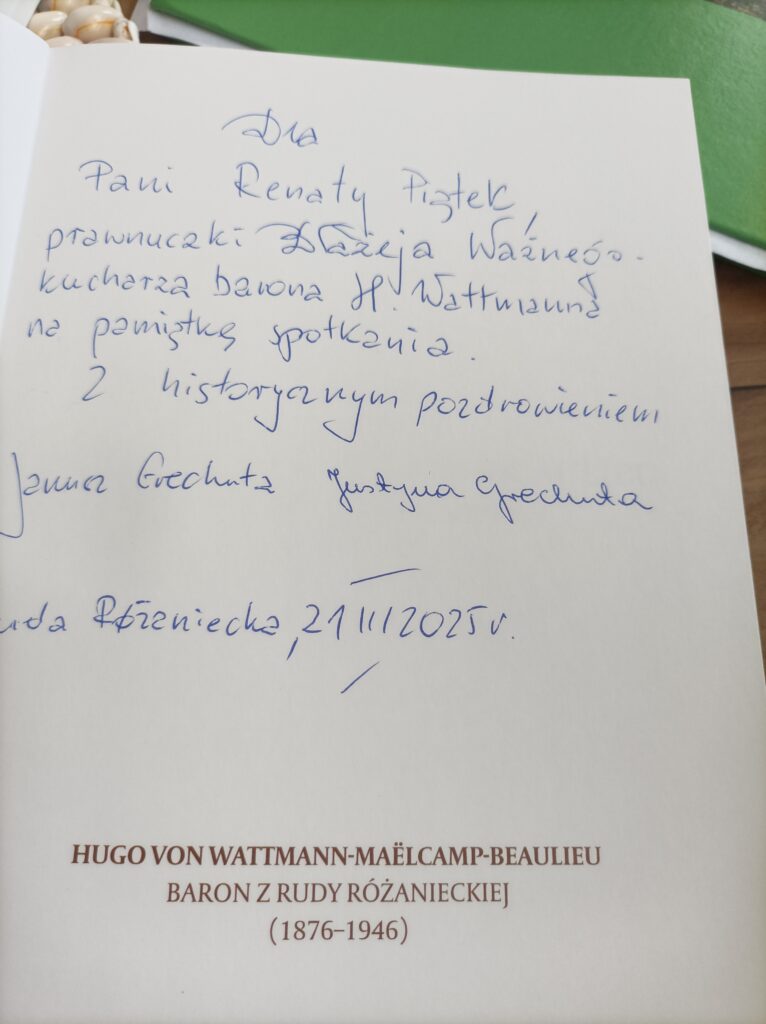 Zapraszam również do słuchania podcastu Słucham Historii – Ocalić od zapomnienia – wywiad z autorami książki „Hugo von Wattmann- Maelcamp Beaulieu. Baron z Rudy Różanieckiej 1876-1946”, wyd. Edytorial – Rzeszów 202, z Justyną Grechuta i Januszem Grechuta.